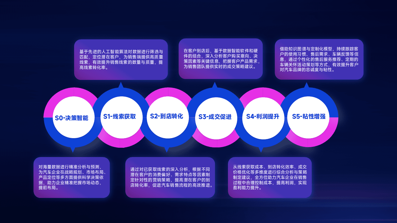 通过拓宽潜在客户来源、、、、优化线索分配并提高到店转化率,,,,以增强销售效率。。。。同时,,利用线索数据不断优化分析模型,,,有效提升转化率,,扩大营销影响力。。